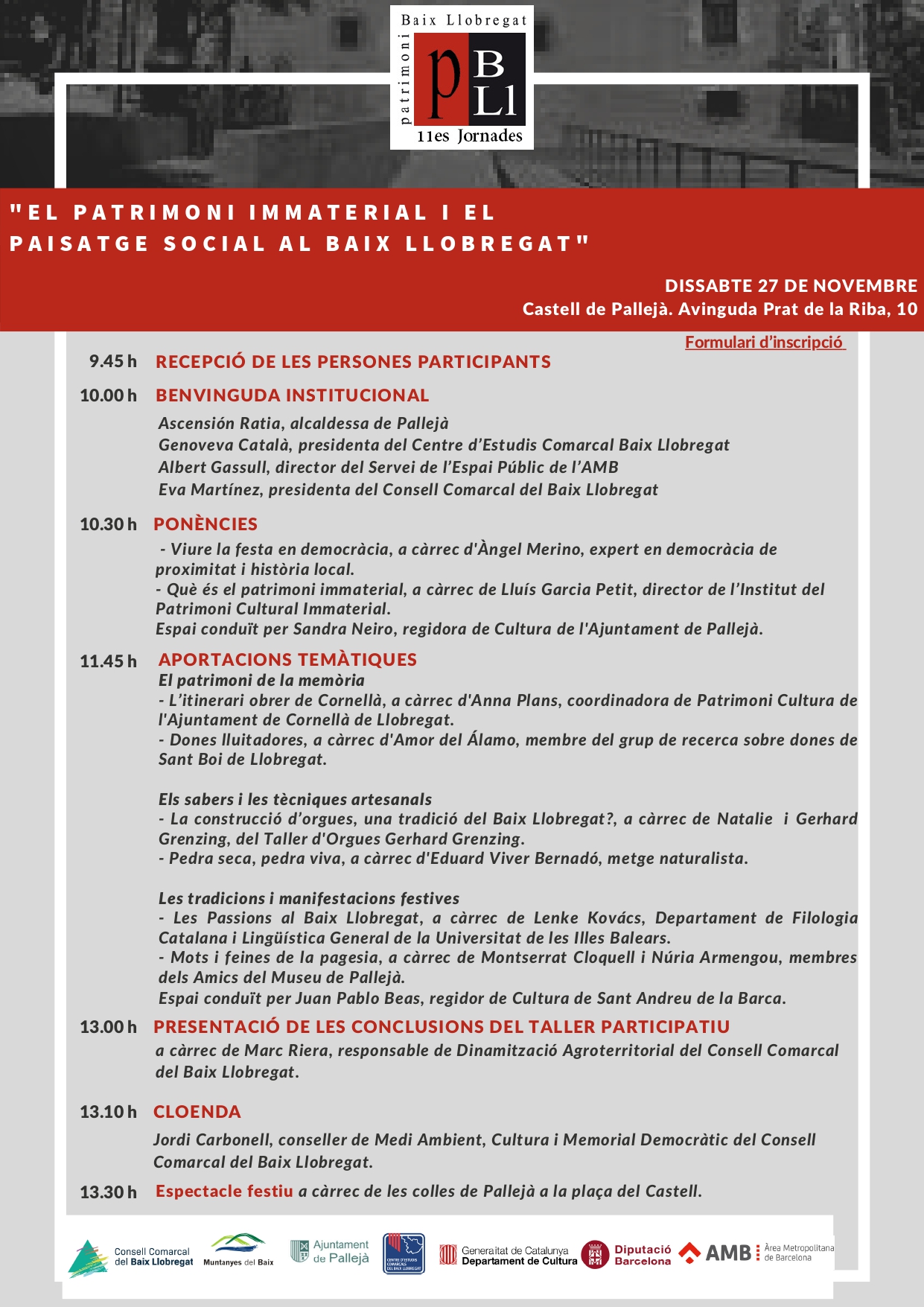 Inscripcions a: https://www.elbaixllobregat.cat/formulari/11es-jornades-de-patrimoni-del-baix-llobregat-el-patrimoni-immaterial-i-el-paisatge-social
