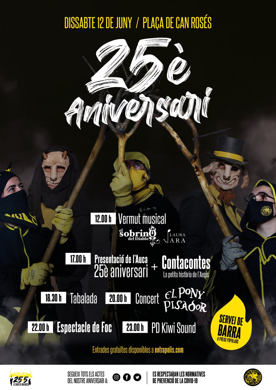 Ha estat un any on, més que mai, la colla s’ha esforçat per mantenir la flama encesa (revetlla popular de Sant Joan, presentació del llibre “La petita història de l’Aegis”, creació de l’Auca “25è aniversari”), i aquest dia volen compartir això i més amb tothom. Tot plegat, amb les mesures sànitaries de seguretat vigents. Us conviden a: