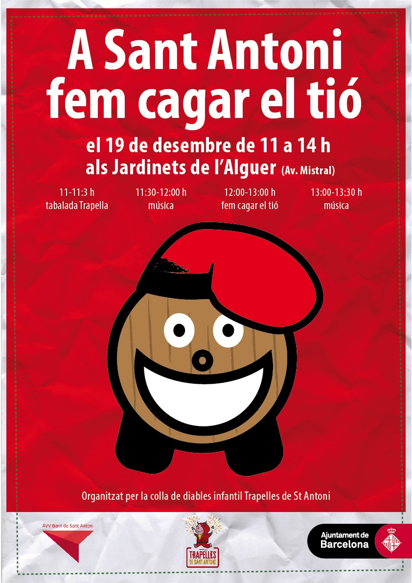 Diumenge 19 de desembre, els Diables Trapelles de Sant Antoni faran cagar el tió. D’11 a 14 h, als Jardinets de l’Alguer, es faran diferents activitats.
