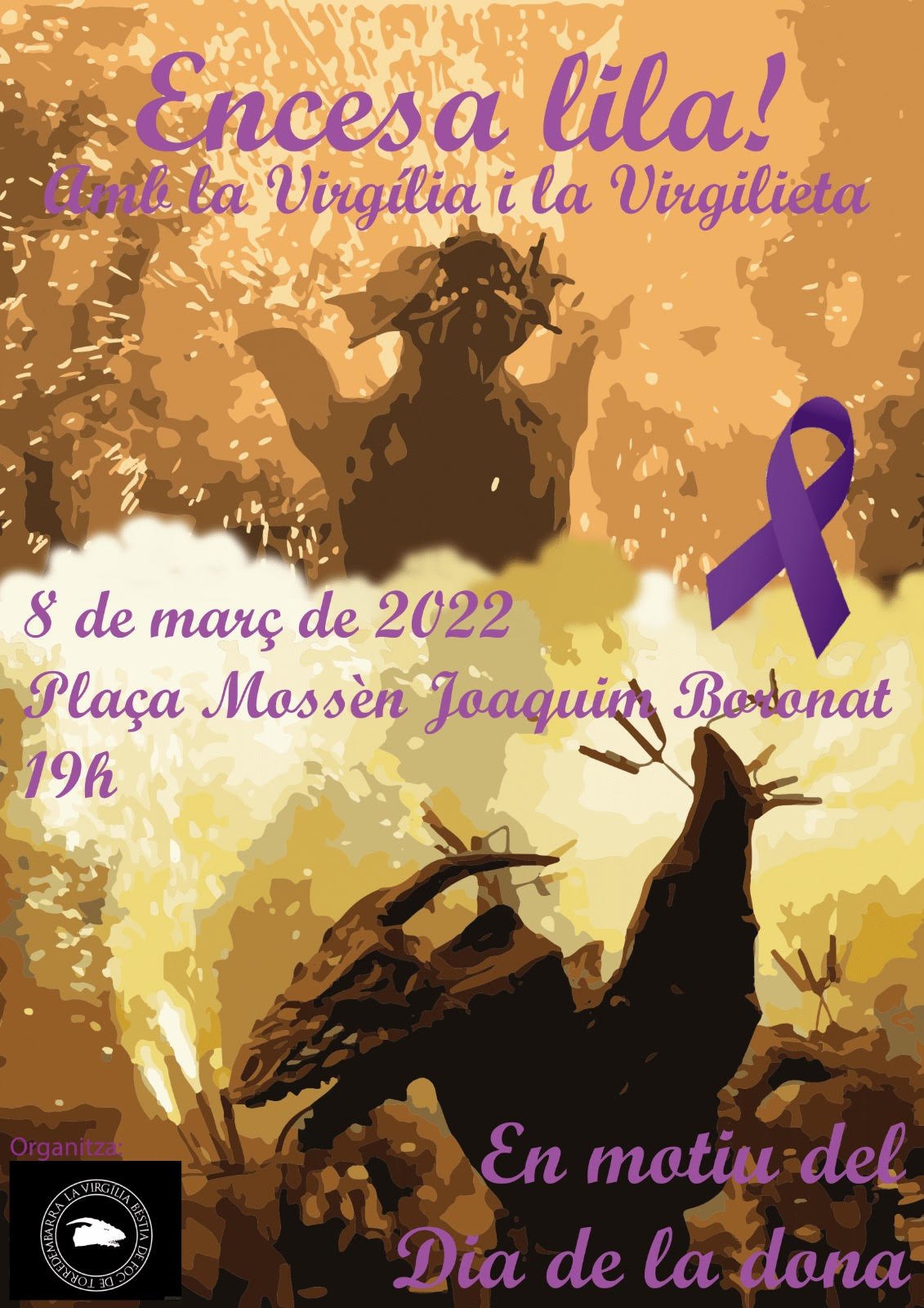 El pròxim dimarts 8 de març, amb motiu del Dia Internacional de la Dona, la Virgília i la Virgilieta de Torredembarra faran una encesa lila a les set de la tarda a la plaça de Mossèn Joaquim Boronat.