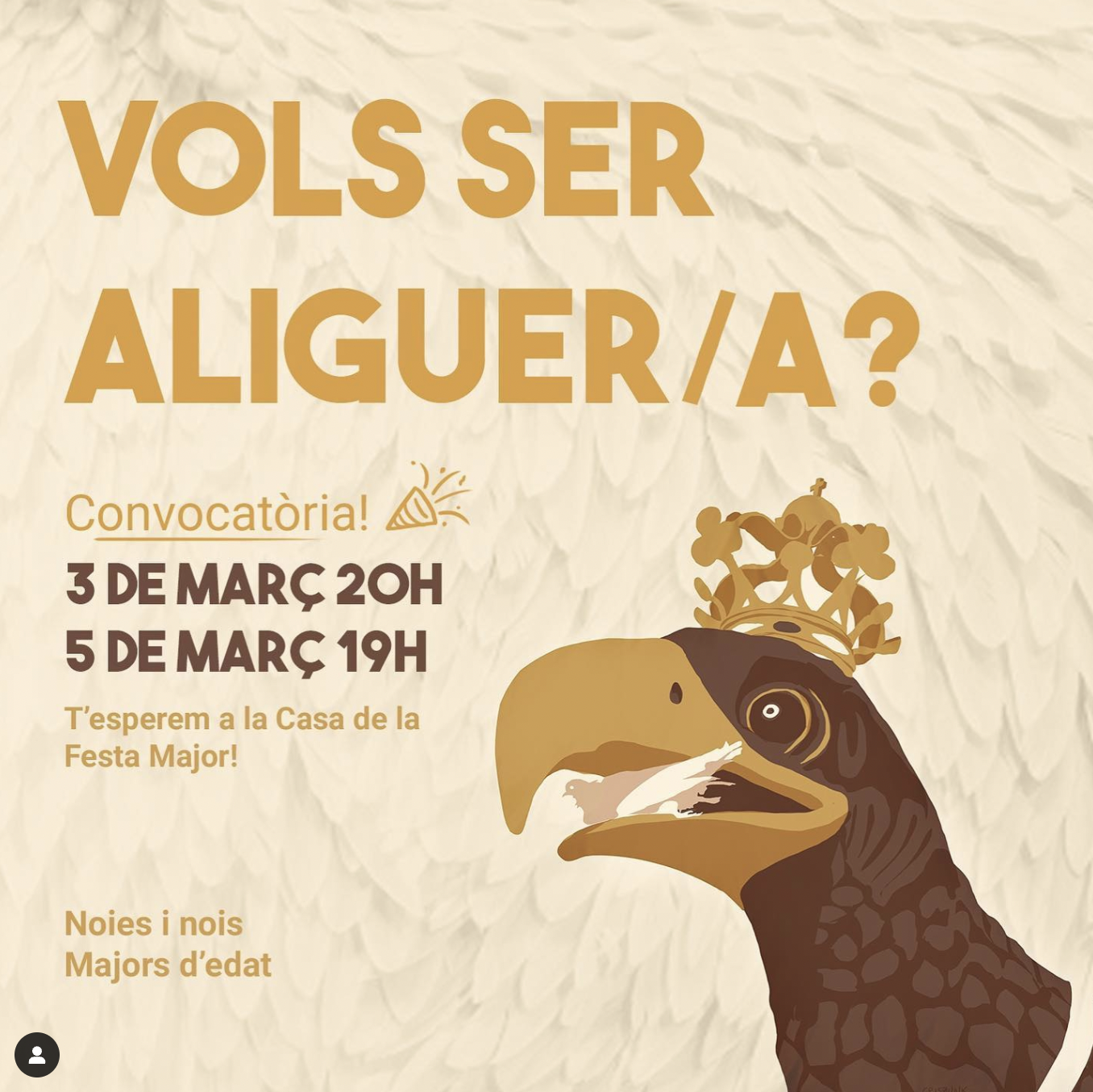 Vols ser portant de l’Àliga de Vilafranca? El 3 i 5 de març a la tarda, tothom que vulgui formar-hi part pot apuntar-se a la Casa de la Festa Major (accés per l’entrada antiga al costat de la font).
