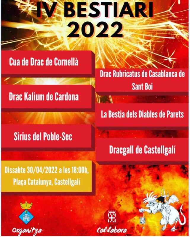 El pròxim dissabte 30 d’abril se celebrarà a Castellgalí una trobada de bestiari. L’acte començarà a les 18 h des de la plaça de Catalunya i comptarà amb l’assistència de: