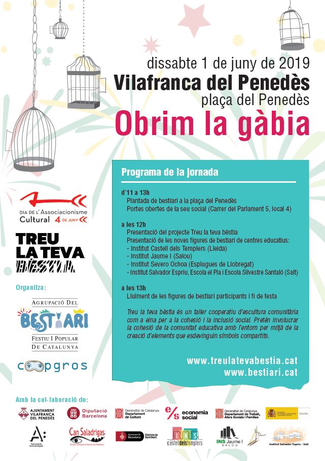 - d’11 a 13h: Plantada de bestiari a la Plaça del Penedès / Portes obertes de la seu social