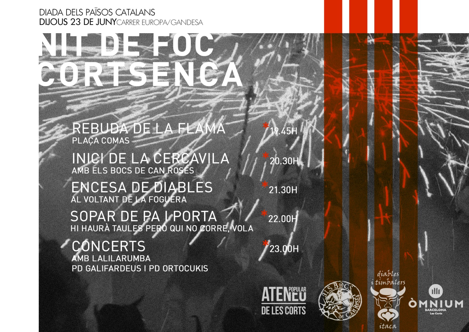El pròxim dijous 23 de juny, per la Revetlla de Sant Joan, se celebrarà, al vell mig de l’antic poble de les Corts, la Nit de Foc Cortsenca. La celebració tindrà lloc a l’encreuament del carrer Europa amb carrer Gandesa.