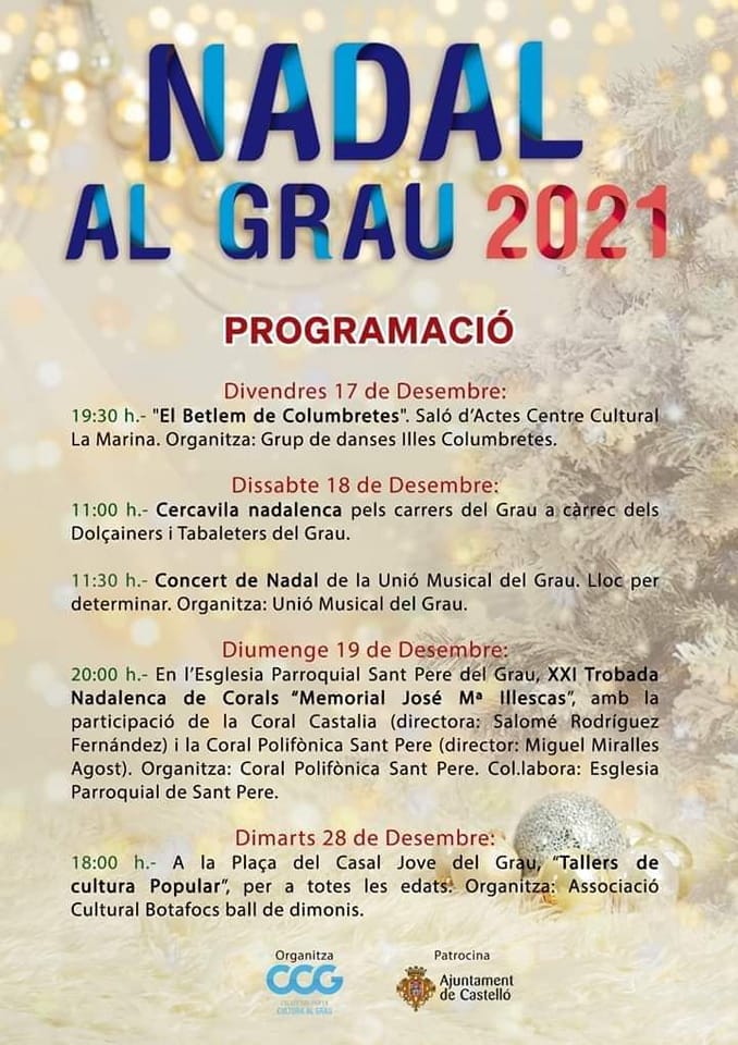 L’Associació Botafocs de Castelló de la Plana ha preparat diferents activitats nadalenques per aquest hivern. És el cas dels Tallers de Cultura Popular que es faran dimarts 28 de desembre a la plaça del Casal Jove del Grau. L’activitat començarà a les 18 h i està dirigida a totes les edats.